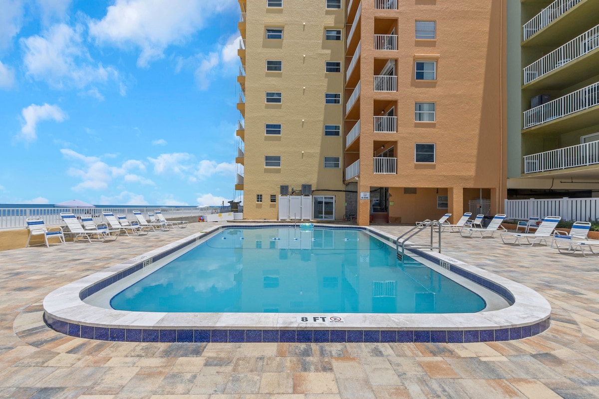 Step outside to enjoy the beachfront swimming pool overlooking the Gulf of Mexico, our lounge on one of the many lounge chairs with a view! Whether you're watching the waves, catching a sunset, or taking a refreshing dip, the pool area offers the perfect place to unwind.