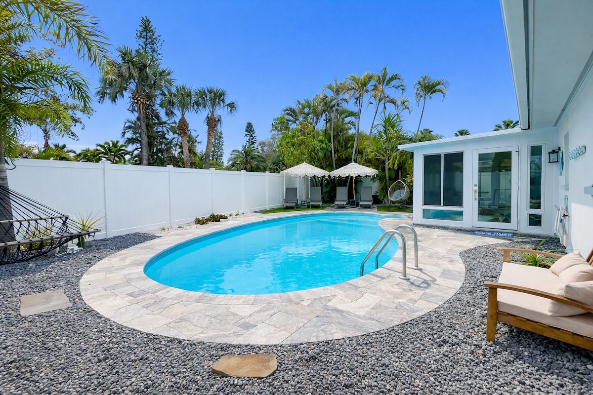 Indian Rocks BeachWelcome to our Peaceful Sanctuary! A fully organic coastal retreat in Indian Rocks Beach, just a short walk to the Gulf. Enjoy an organic Avocado King mattress, natural bunk beds, organic linens, whole-home water filtration, 5-stage reverse osmosis drinking water, ceramic cookware, heated pool, tropical outdoor shower, fresh herbs, beach gear, pickleball, and board games — designed for wellness-minded families seeking a restorative beach escape. The beautiful beach is a short 5-7 minute walk!